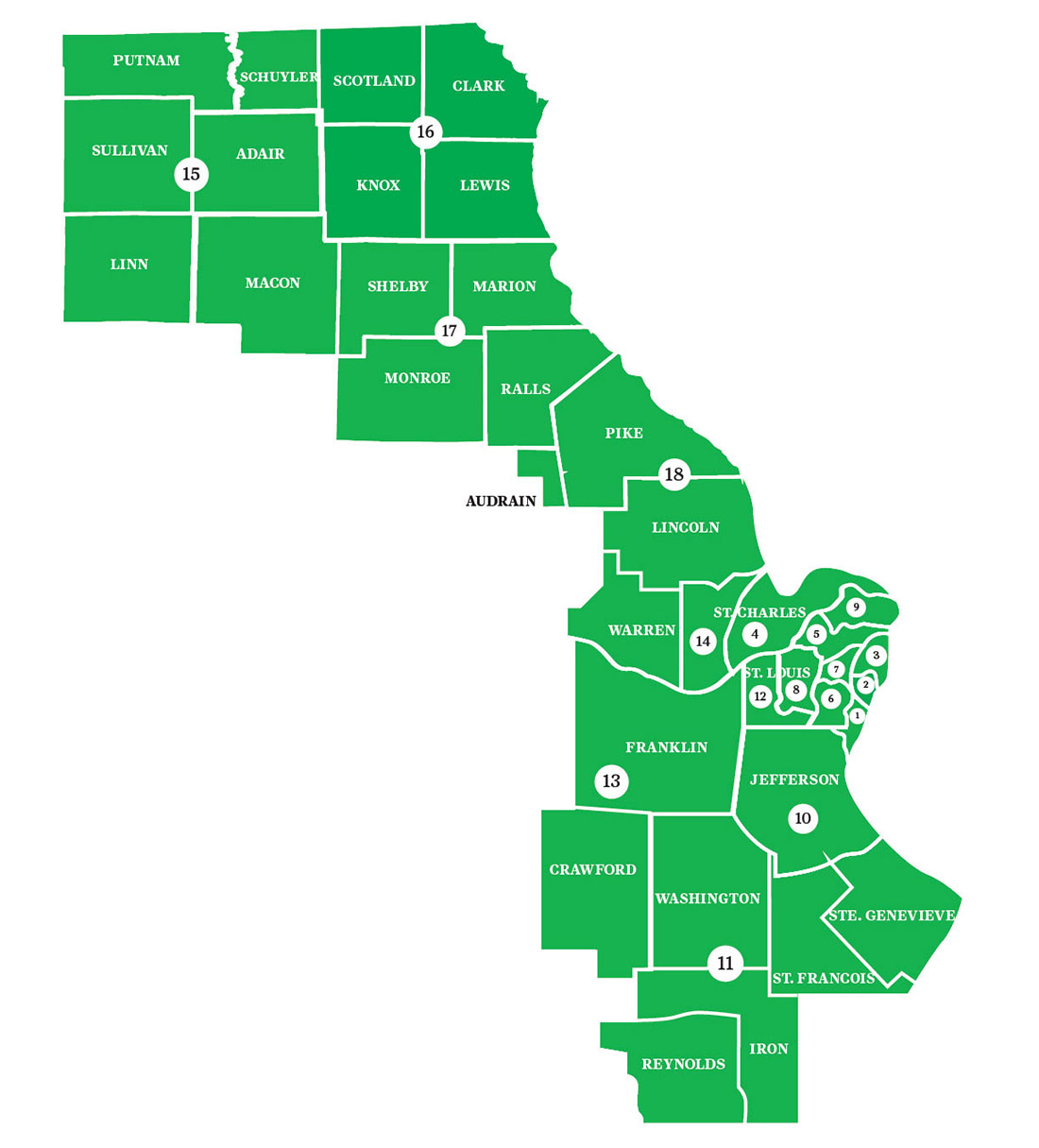 Click on the district numbers to learn more about each district and to find your Community Engagement Manager (CEM).